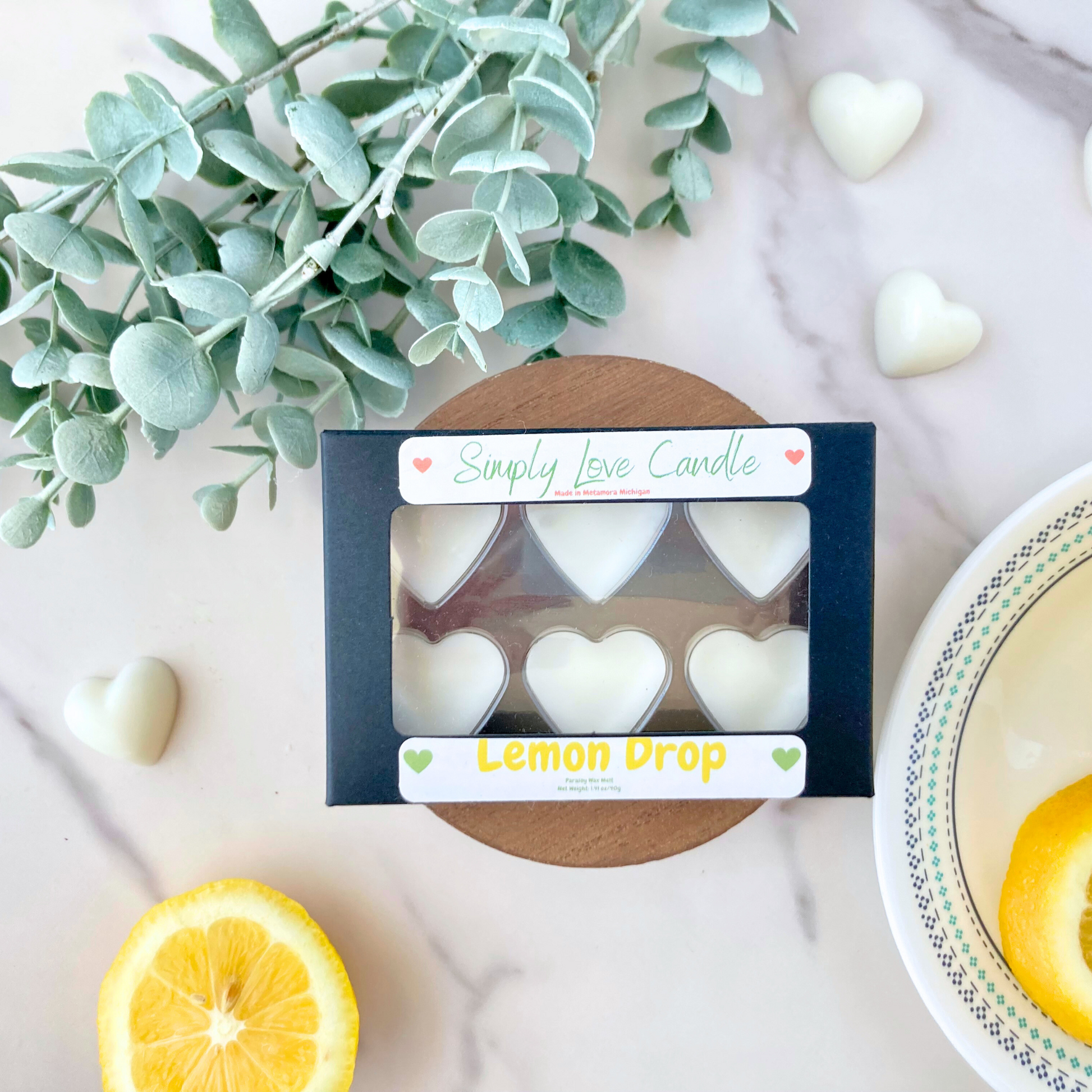 Lemon Drop Heart Wax Melts in Black Kraft Box